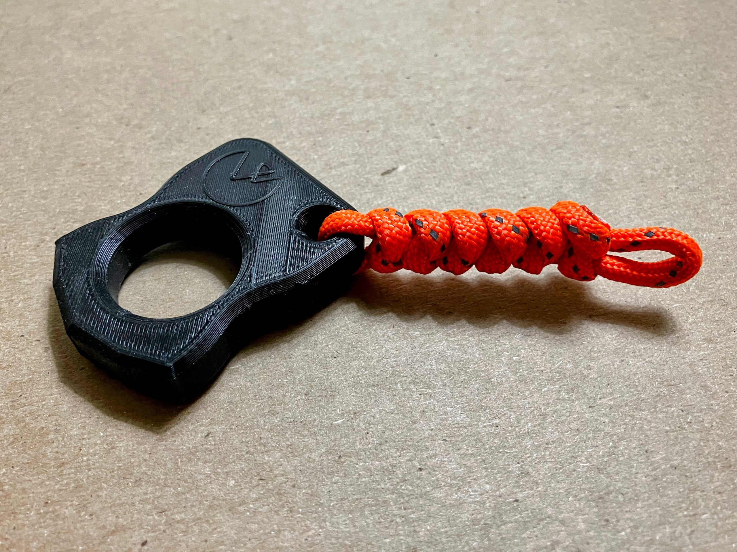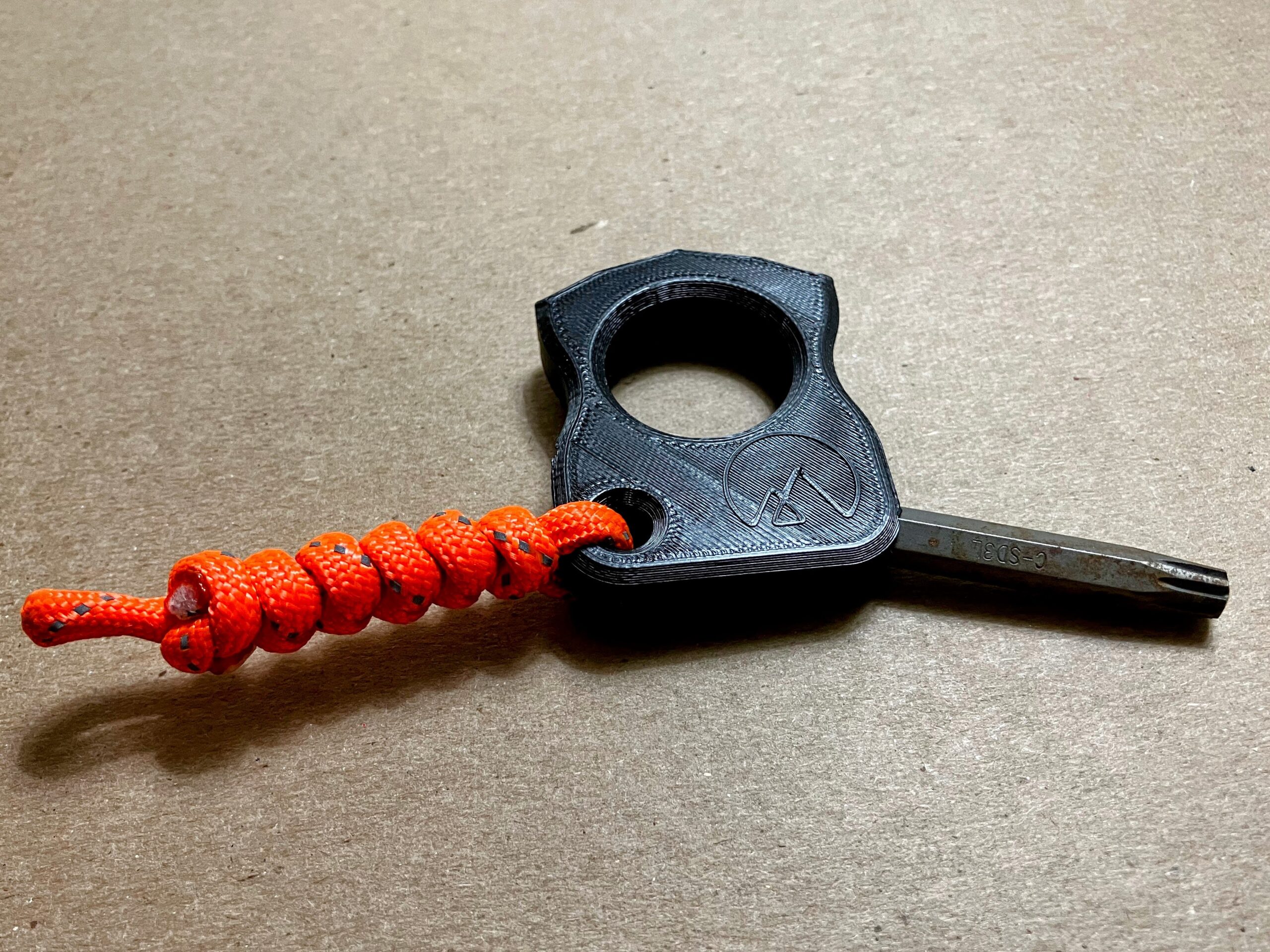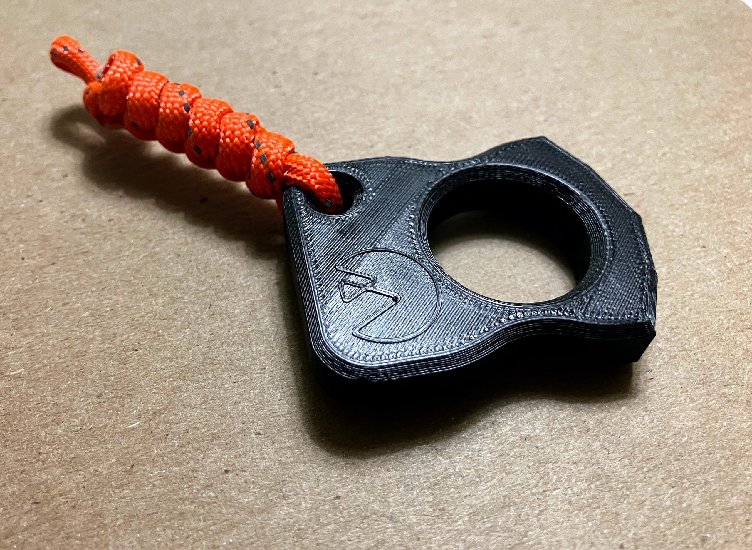 The “Knuck” is there for you when you need it. Part keychain, part utility, part fidget friend, and part peace of mind. It travels well with its all-polymer 3D printed design (except for any bits you might stash in its 1/4″ hex storage compartment). Comes with a High-Viz Orange 550 cord lanyard.