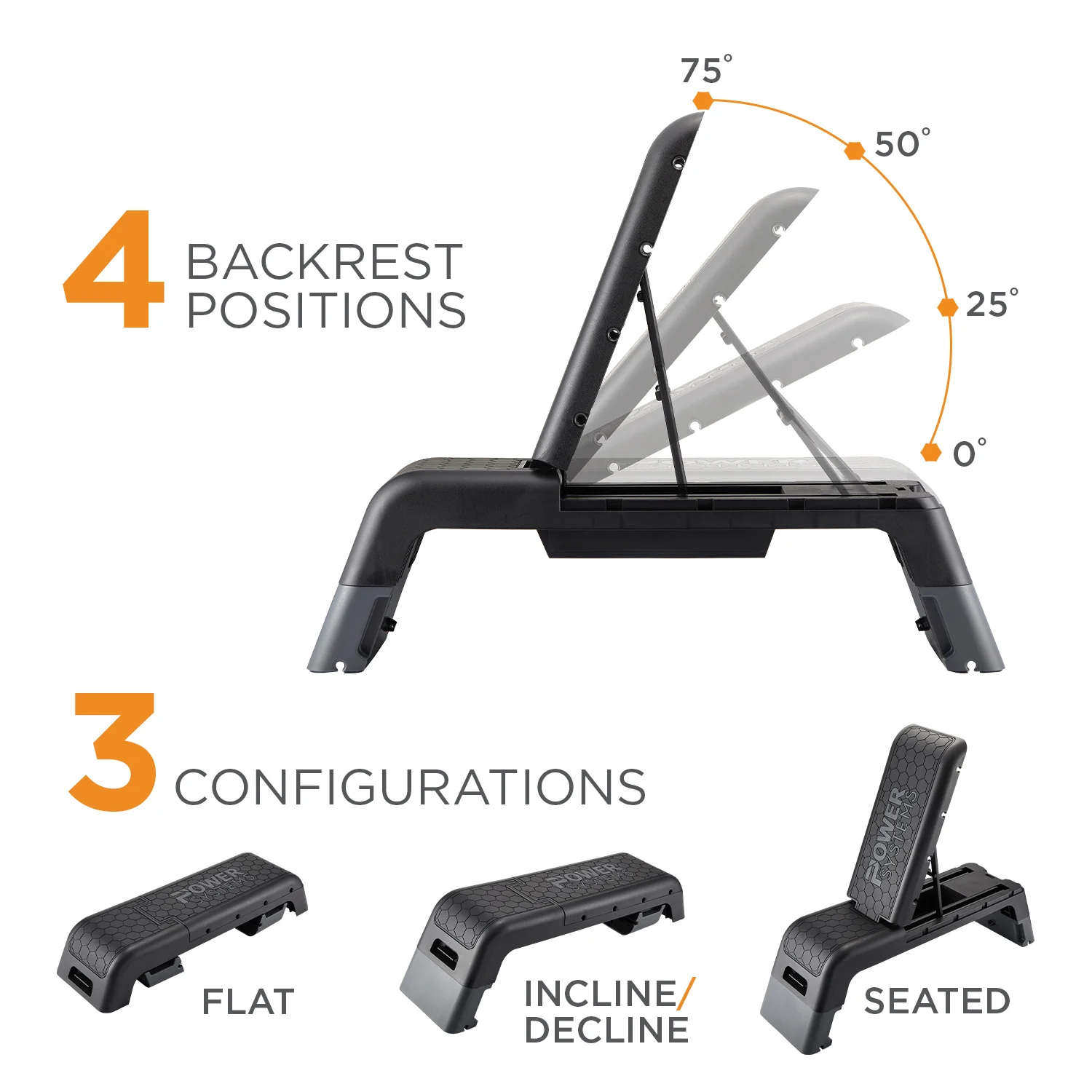 - Two-in-one design: use as a step platform or transform into a flat, incline, or decline bench with three angle positions.