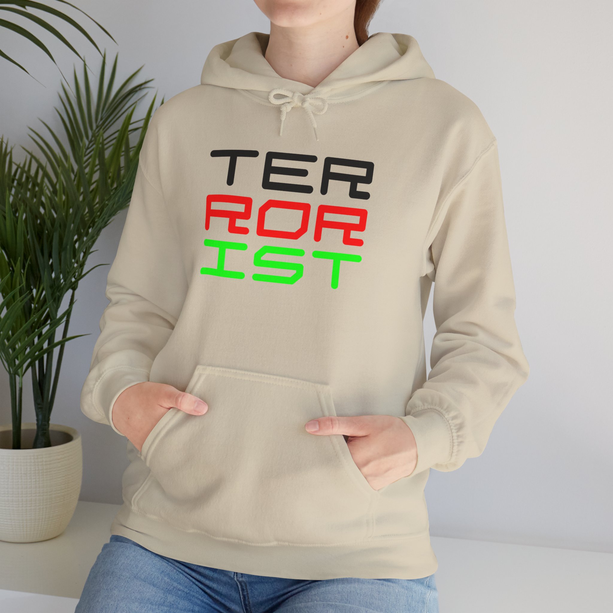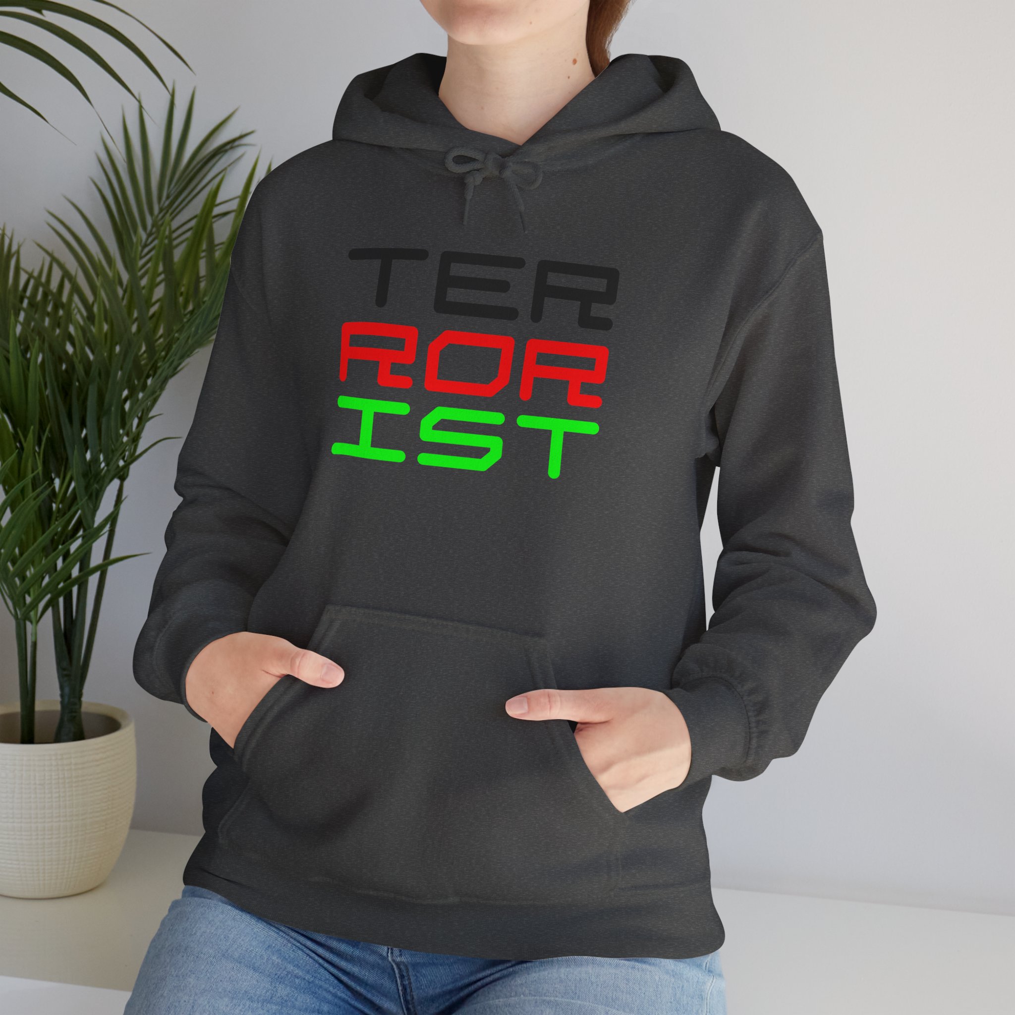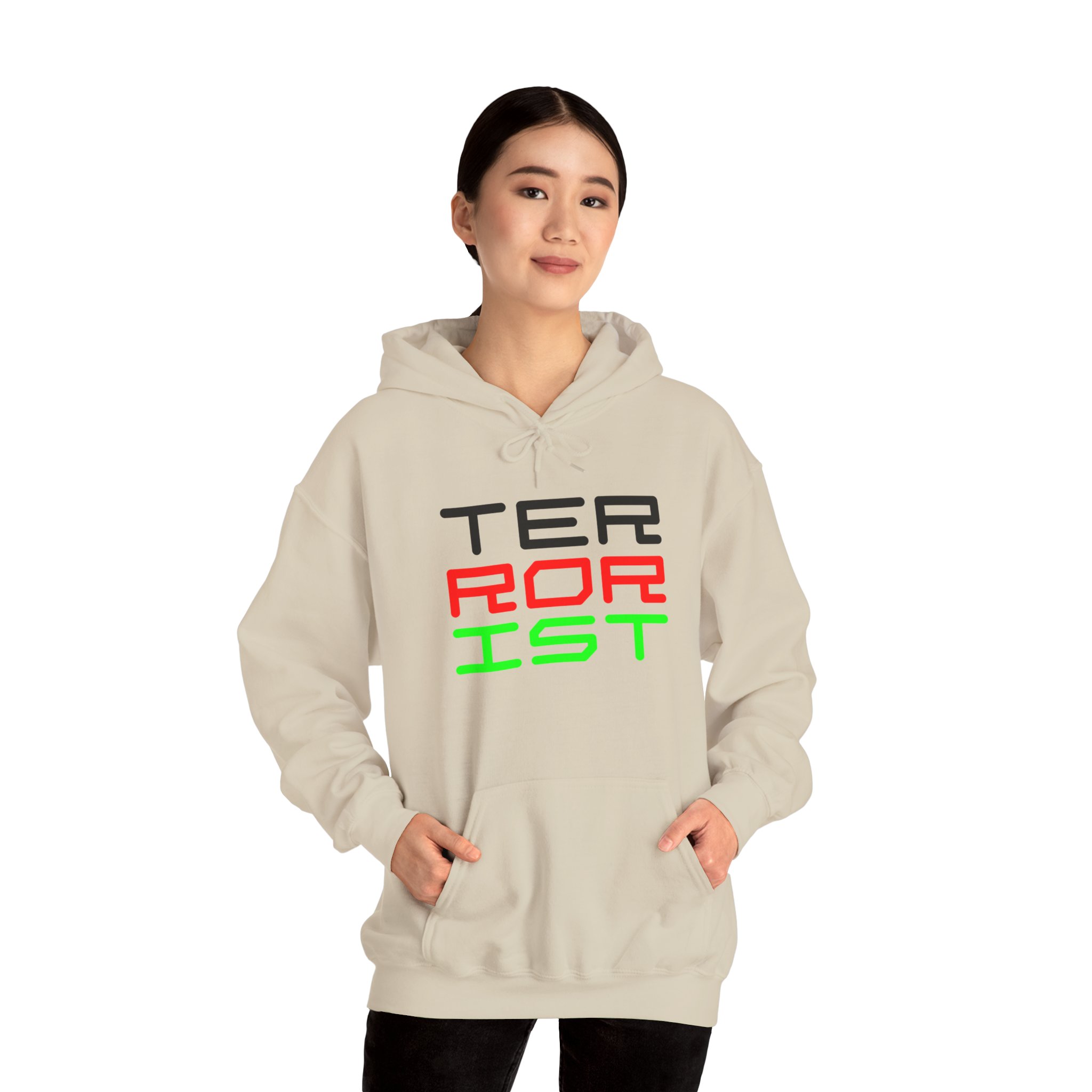 This hoodie speaks in a blunt, combustible whisper — a soft, heavy hoodie that carries a sharp phrase: “Terrorist Hoodie – Sometimes it’s just how you feel.” It sits like armor for those late-night commutes, angry demos, and solitary walks through neon-lit streets. The heavy 50/50 fabric holds heat and shape, giving the message gravitas without feeling stiff. The kangaroo pocket keeps hands warm and available for fists or comfort. A double-lined, color-matched hood with adjustable drawcord frames your face when you need to disappear; the tear-away neck label keeps the back of your collar itch-free when you’re pacing and thinking. This is for adults who channel their edge into style — people who want clothing that talks back, that matches a mood as much as it matches a soundtrack. Wear it to a show, to a late coffee run, or on the way to a protest where words might not be enough. The construction is mindful: tubular knit reduces seams and waste, and printing/decoration options (DTG/DTF or embroidery) keep the graphic crisp and long-lasting. It’s a heavy, honest hoodie meant to be lived in — loud when you need it, comfortable the rest of the time.